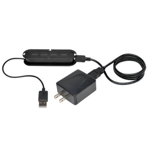 Tripp Lite U222-004-R. Interfaces Hub: USB 2.0. Taux de transfert de données: 480 Mbit/s, Couleur du produit: Noir, Voyants: Énergie, Statut. Type de source d'alimentation: Secteur, USB, Tension de sortie: 5 V, Courant de sortie: 2 A. Largeur: 101,6 mm, Profondeur: 30,5 mm, Hauteur: 17,8 mm. Largeur du colis: 101,6 mm, Profondeur du colis: 129,5 mm, Hauteur du colis: 25,4 mm