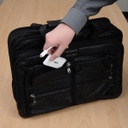 About the size of a credit card for easy carrying in a pocket, purse or laptop bag