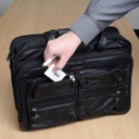 About the size of a credit card for easy carrying in a pocket, purse or laptop bag